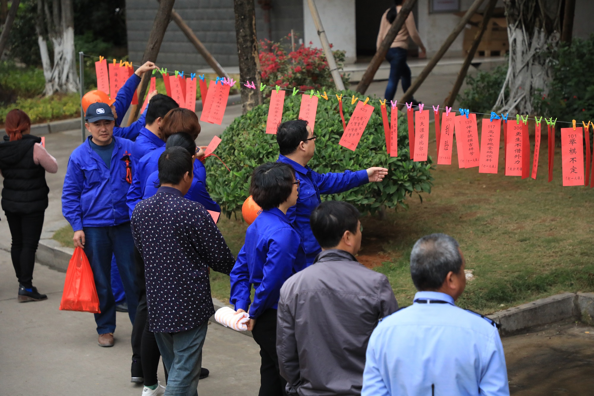 燈謎起源于春秋戰(zhàn)國時期,是我國元宵節(jié)的傳統(tǒng)習俗,下午三時許,經(jīng)過精心挑選和仔細布置的猜謎現(xiàn)場在三寶公寓與眾人見面,歡快的音樂,綠樹掩映的三寶公寓園區(qū)里,猜字、猜詩、猜煉鋼知識、猜安全知識、猜成語、猜時令節(jié)氣等謎面應有盡有。由于是公司舉辦的首屆燈謎活動,吸引了眾多公司職工及其家屬的踴躍參與,其中不乏尚未開學的孩子們,他們在父母的帶領下參與其中,既能從中學習到更多知識,也共享親子同樂的幸福時光。各種豐富且實用的獎品更是讓大家的參與熱情高漲。