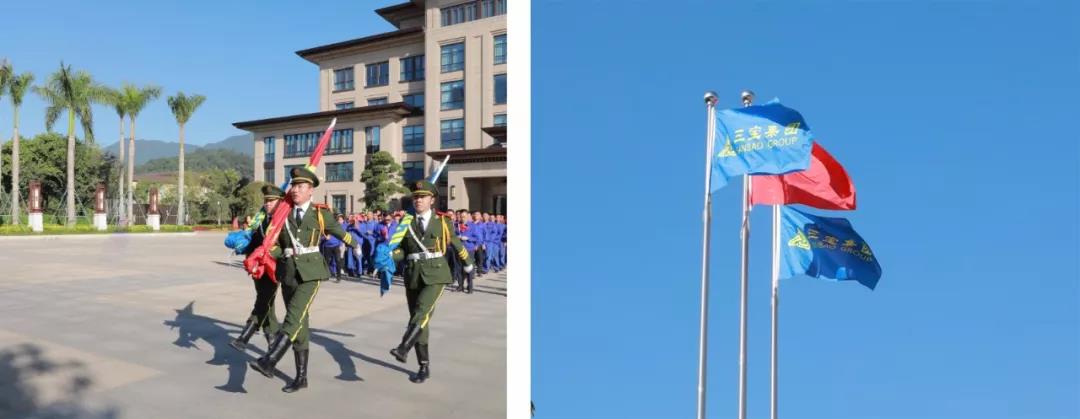 升國旗儀式正式開始!“升國旗,奏國歌,行注目禮!”在雄渾激昂的《義勇軍進(jìn)行曲》聲中,鮮艷的五星紅旗迎風(fēng)展開、冉冉升起。三寶集團(tuán)全體職工仰望國旗,致以最深情的祝福。