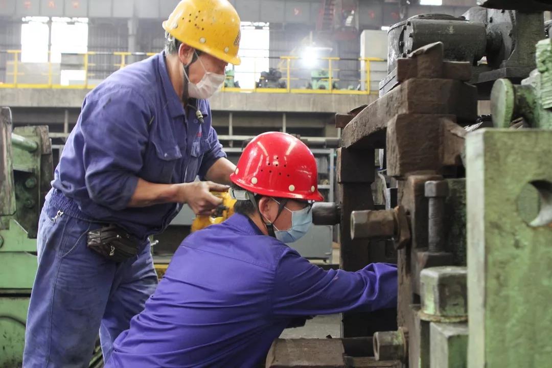 疫情再忙,生產(chǎn)不亂。當(dāng)走到車間時,生產(chǎn)現(xiàn)場機(jī)器轟鳴、井然有序。不遠(yuǎn)處電焊火花格外刺眼,走近一看檢修現(xiàn)場工器具擺放整齊,軋機(jī)生產(chǎn)有條不紊,可以看到員工正在有序進(jìn)行著設(shè)備維護(hù)工作。在主控室電工班班長張國慶指著考勤本向筆者介紹,整個電工班組在春節(jié)期間一直堅守崗位。作為棒材五廠設(shè)備副廠長,陳福忠率領(lǐng)檢修人員從加熱爐到軋鋼到精整一條線維護(hù),保證了檢修任務(wù)的順利進(jìn)行,實現(xiàn)了生產(chǎn)檢修“兩不誤”。在這關(guān)鍵時期,他們一方面做好員工抗疫情的宣傳教育,另一方面嚴(yán)格組織人們做好安全生產(chǎn)工作,做到“一線一崗一責(zé)任,一人一點一駐守”。