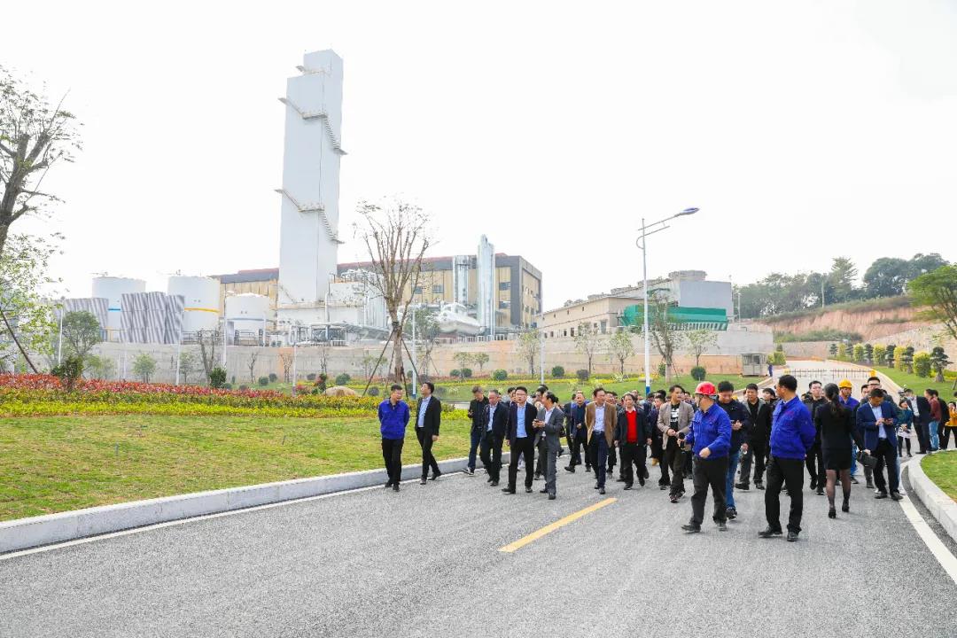 圖為與會(huì)人員參觀三寶集團(tuán)廠區(qū)