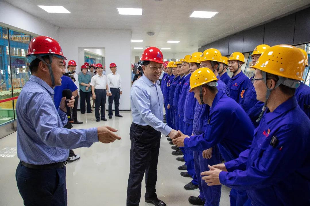 邵書記親切地說:“我和劉遠(yuǎn)市長代表市委市政府來看望大家,祝大家節(jié)日快樂!”在三寶集團(tuán)高強(qiáng)度優(yōu)棒線項(xiàng)目現(xiàn)場,邵書記與全國勞動(dòng)模范吳長錫,省、市、區(qū)級(jí)勞動(dòng)模范、先進(jìn)集體代表,集團(tuán)基層勞模代表和一線職工代表,一一親切握手,并詳細(xì)了解集團(tuán)生產(chǎn)經(jīng)營情況和高強(qiáng)度優(yōu)棒線項(xiàng)目建設(shè)情況。