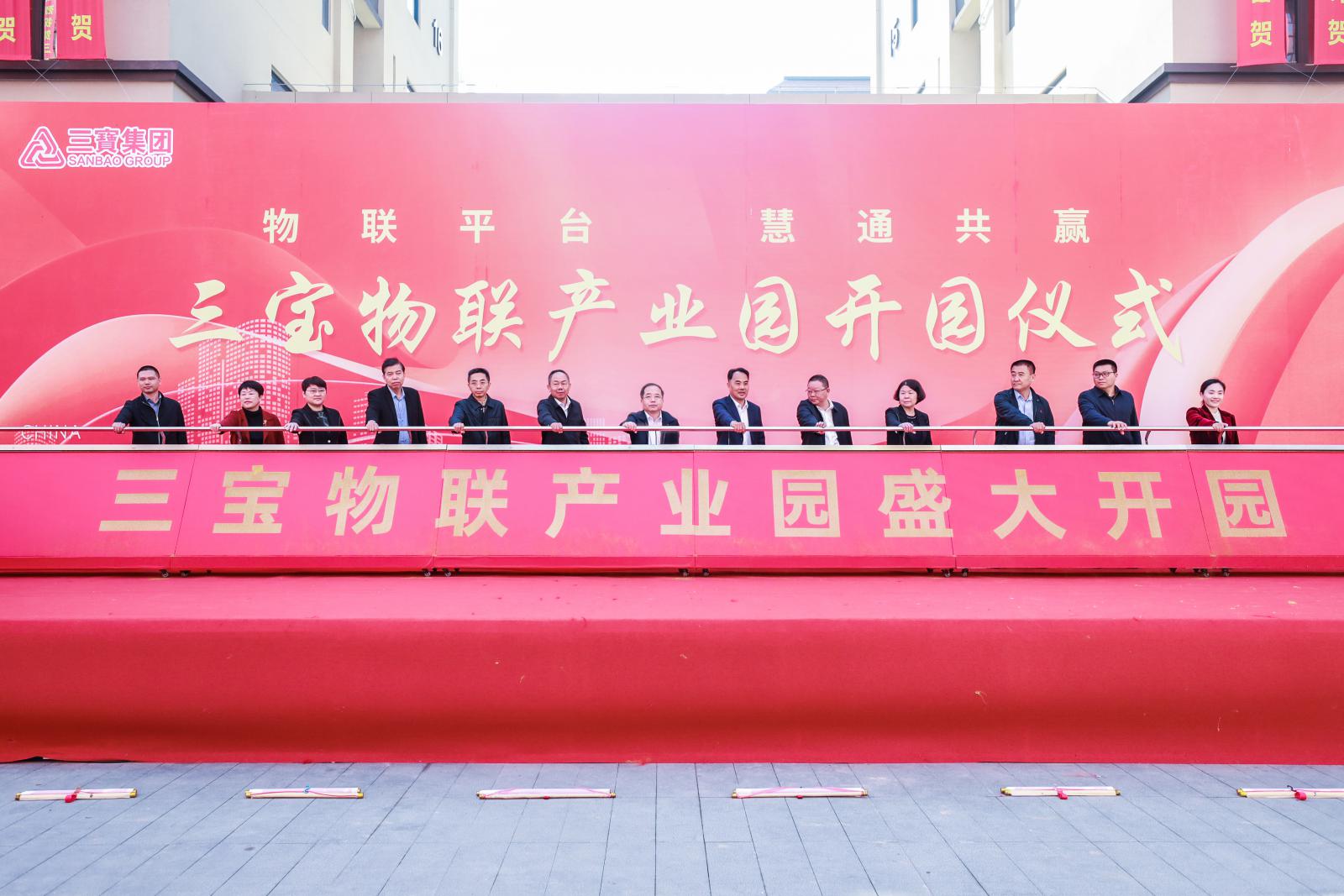 開園儀式上,市區(qū)相關(guān)領(lǐng)導(dǎo)共同推桿啟動三寶物聯(lián)產(chǎn)業(yè)園開園。