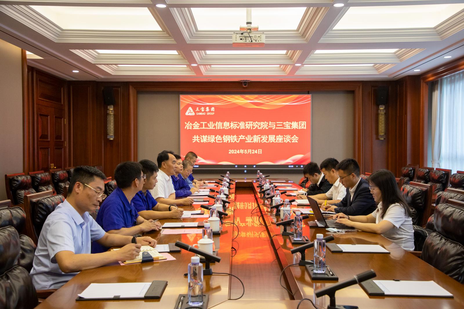 5月24日,冶金工業(yè)信息標(biāo)準(zhǔn)研究院(以下簡(jiǎn)稱:信息標(biāo)準(zhǔn)院)黨委書記、院長(zhǎng)張龍強(qiáng)及相關(guān)專業(yè)人員蒞臨三寶集團(tuán),與集團(tuán)董事長(zhǎng)王光文、生產(chǎn)副總吳長(zhǎng)錫、行政副總房三虎、技術(shù)中心主任郭志強(qiáng)、動(dòng)能部經(jīng)理廖學(xué)平、品質(zhì)部經(jīng)理唐名標(biāo)、辦公室副主任邱金城等圍繞鋼鐵行業(yè)形勢(shì)、企業(yè)高質(zhì)量發(fā)展等相關(guān)議題進(jìn)行座談交流。