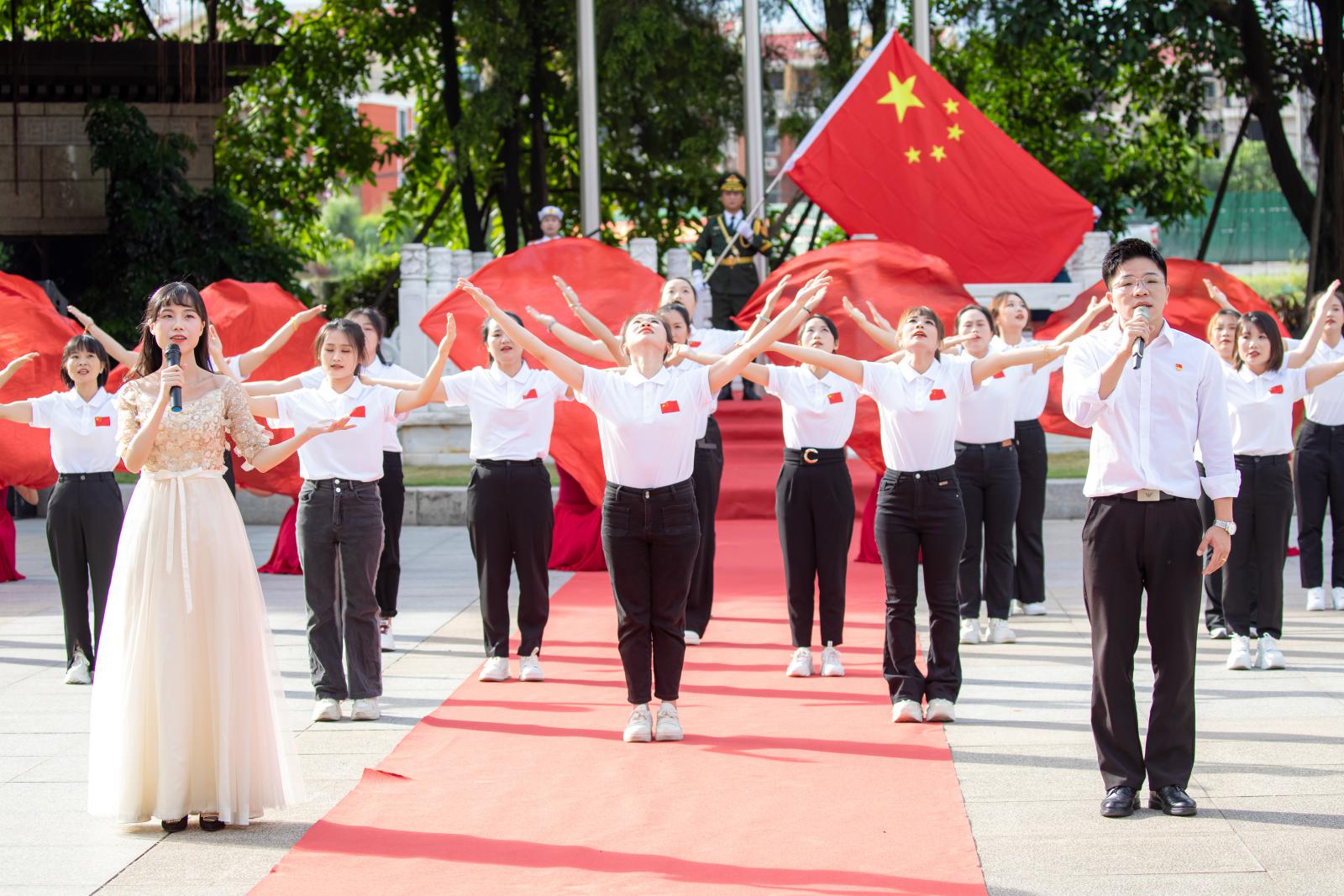 金秋颯爽迎華誕,丹桂飄香慶豐年。10月1日上午,迎著十月的第一縷陽(yáng)光,三寶集團(tuán)在行政樓廣場(chǎng)隆重集會(huì),舉辦慶祝中華人民共和國(guó)成立75周年升旗儀式。集團(tuán)高層領(lǐng)導(dǎo)、中層管理干部、全體黨員、退役軍人以及各單位員工代表共500多人參加了此次活動(dòng)。三寶員工還上演了一場(chǎng)精彩的“祖國(guó)頌、鋼鐵情”廣場(chǎng)表演。