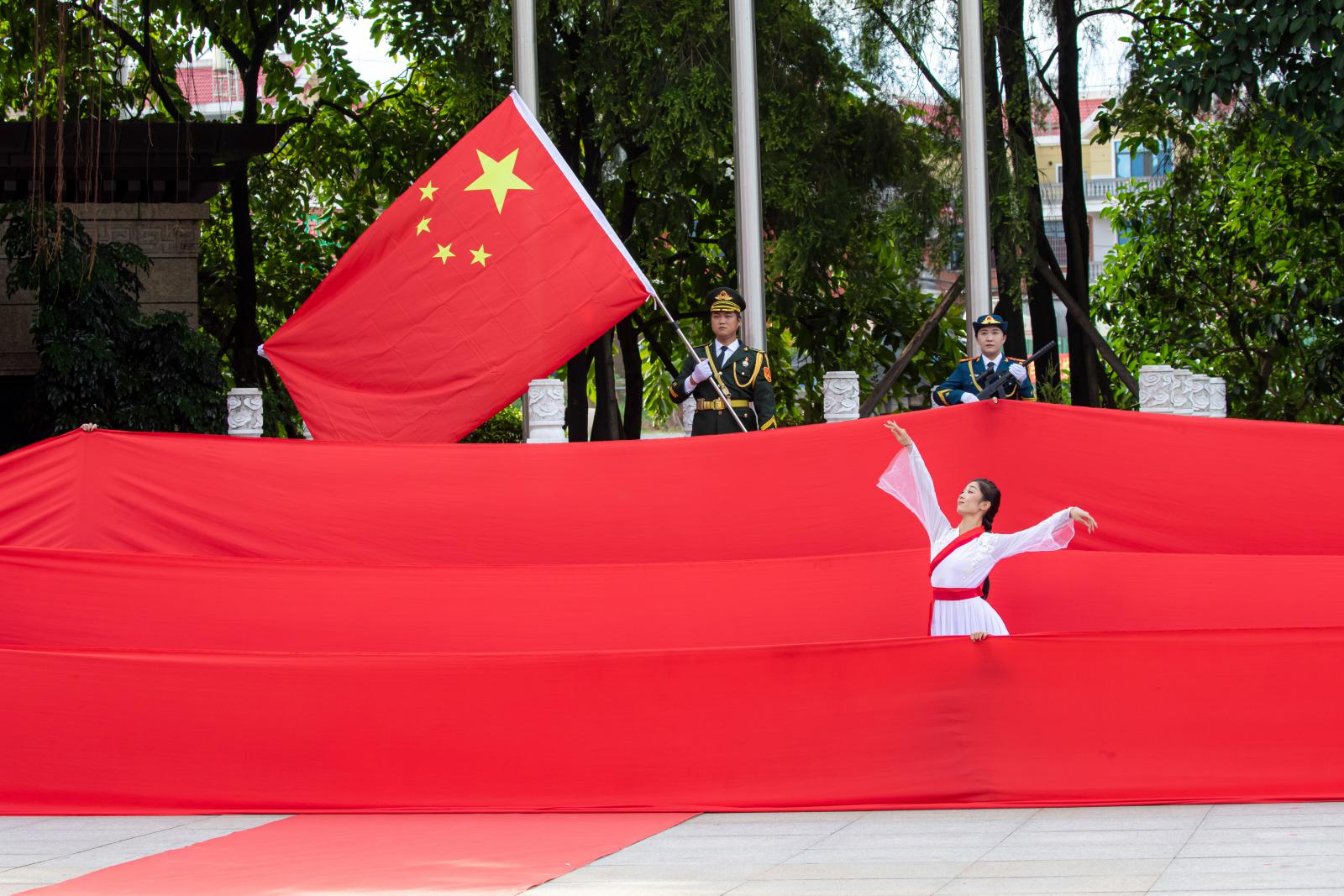 上午8時(shí),升旗儀式正式開始。當(dāng)國(guó)旗護(hù)衛(wèi)隊(duì)邁著雄壯有力的步伐走來(lái),激昂的國(guó)歌聲奏響,鮮艷的五星紅旗迎著旭日冉冉升起。這一刻,所有人面向國(guó)旗肅立行禮,那是對(duì)祖國(guó)最崇高的敬意。