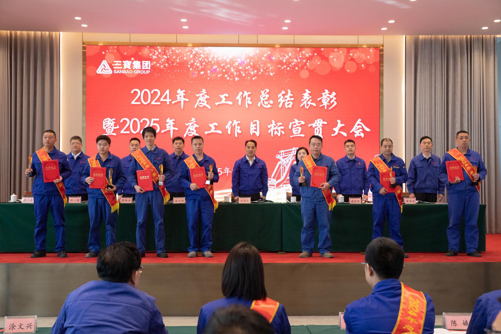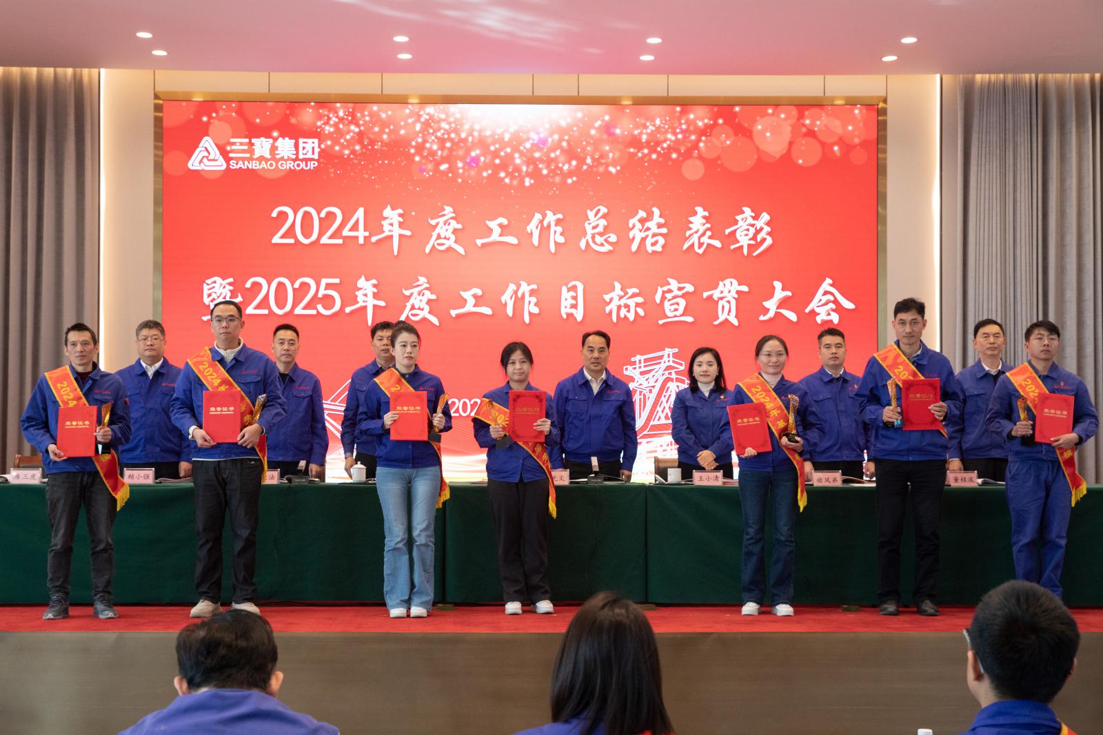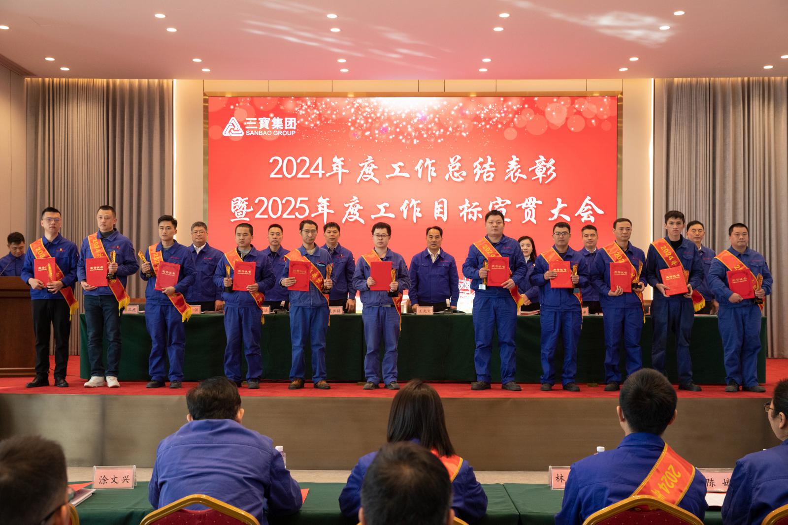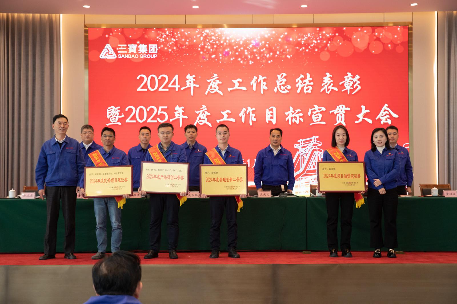副總經(jīng)理褚鳳弟代表集團(tuán)宣讀《三寶集團(tuán)關(guān)于表彰2024年度先進(jìn)單位及個(gè)人的決定》,本年度共產(chǎn)生總經(jīng)理特別獎(jiǎng)5名,基層勞模55名,先進(jìn)班組32個(gè),優(yōu)秀師傅11名,優(yōu)秀新銳29名;管理創(chuàng)新獎(jiǎng)1個(gè)、項(xiàng)目融資突破獎(jiǎng)1個(gè)、產(chǎn)品研創(chuàng)獎(jiǎng)1個(gè)、優(yōu)秀項(xiàng)目建設(shè)獎(jiǎng)1個(gè)。集團(tuán)領(lǐng)導(dǎo)分別為優(yōu)秀單位和個(gè)人頒獎(jiǎng)。