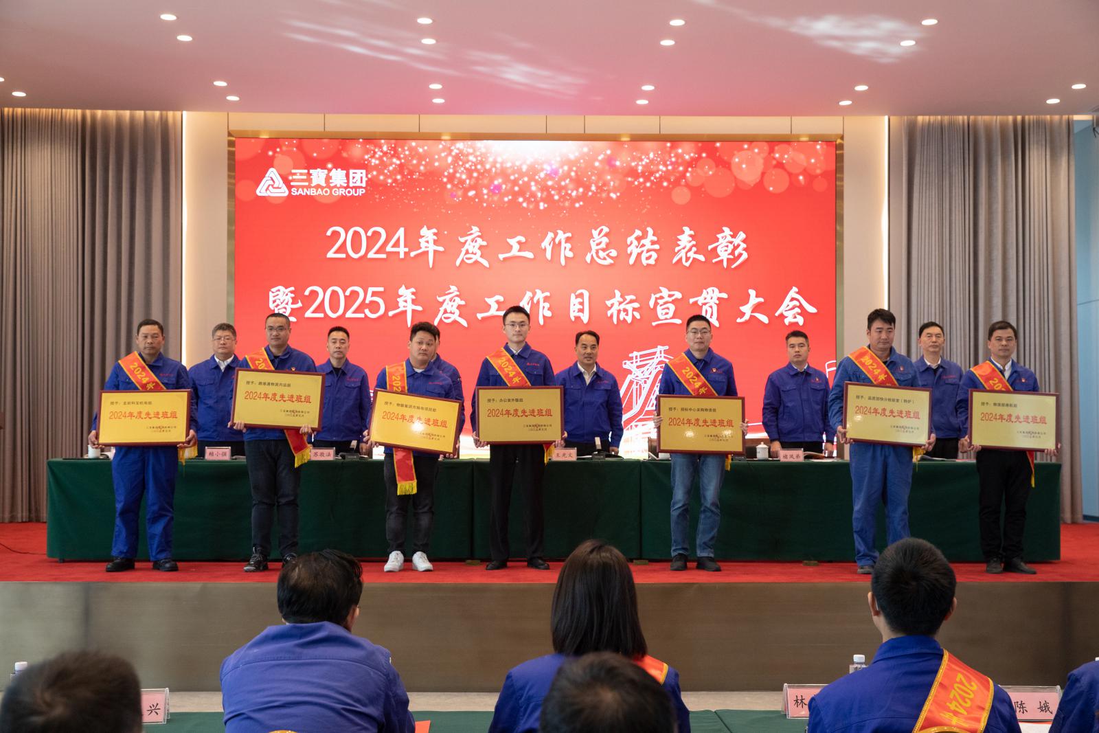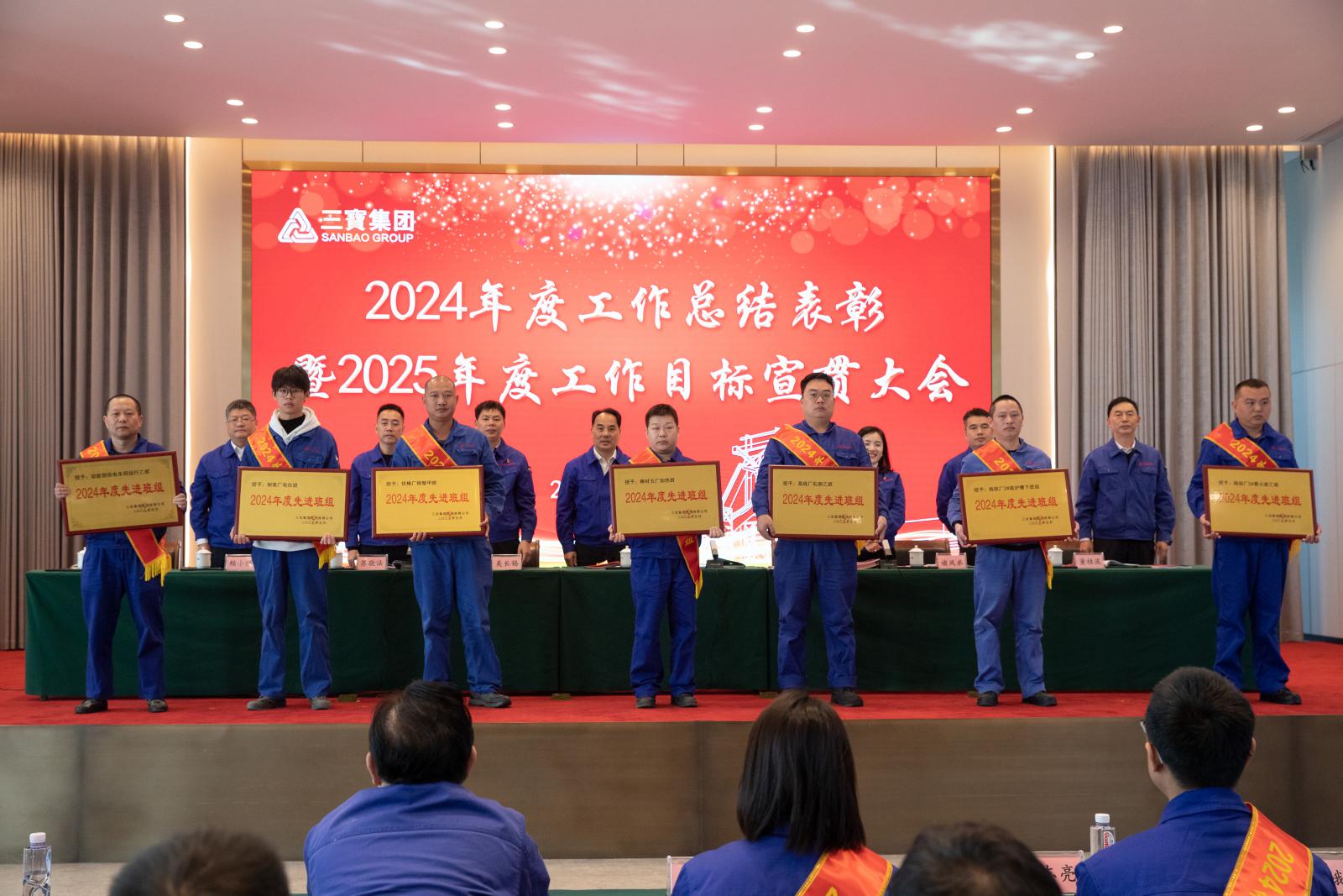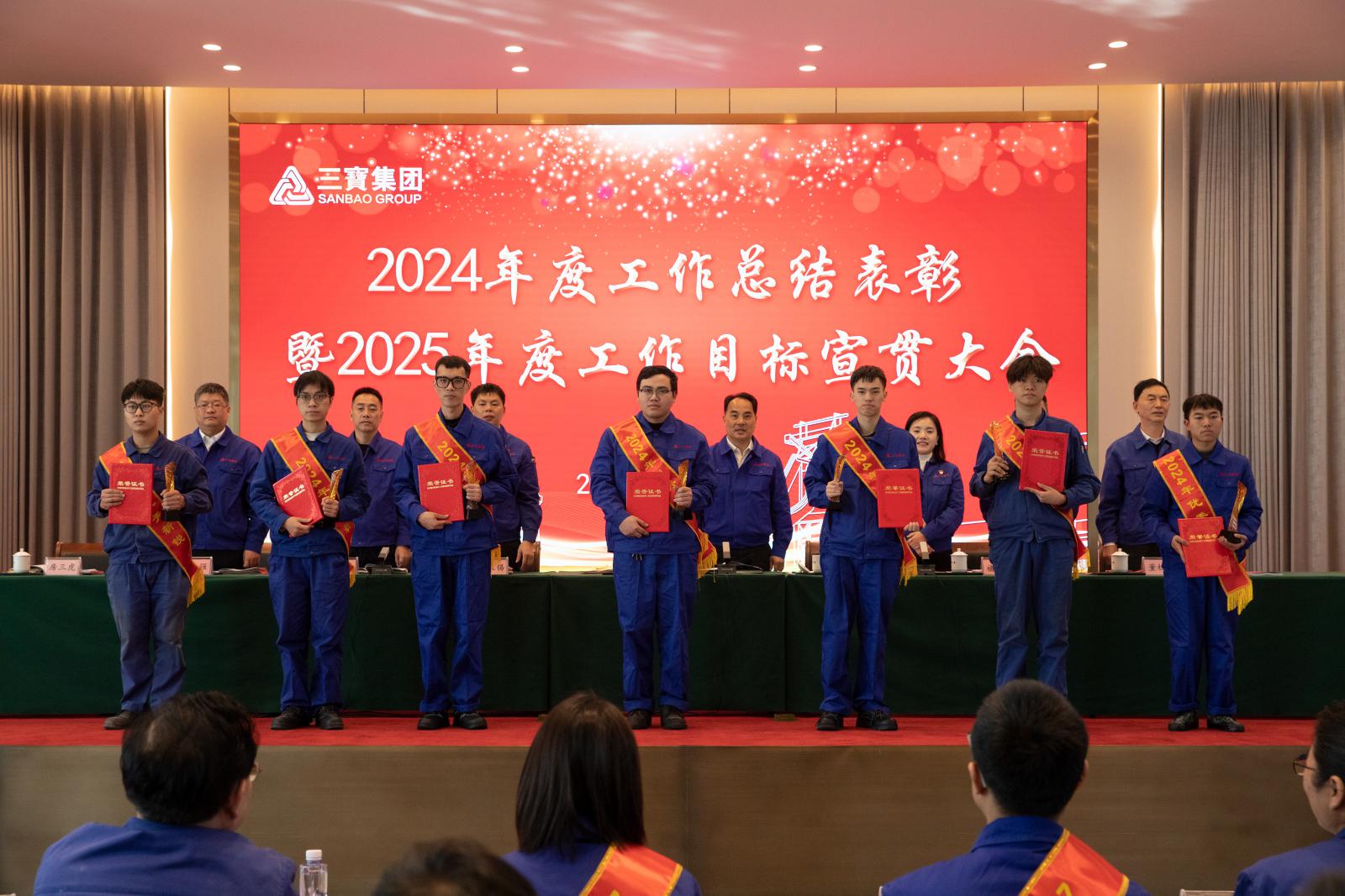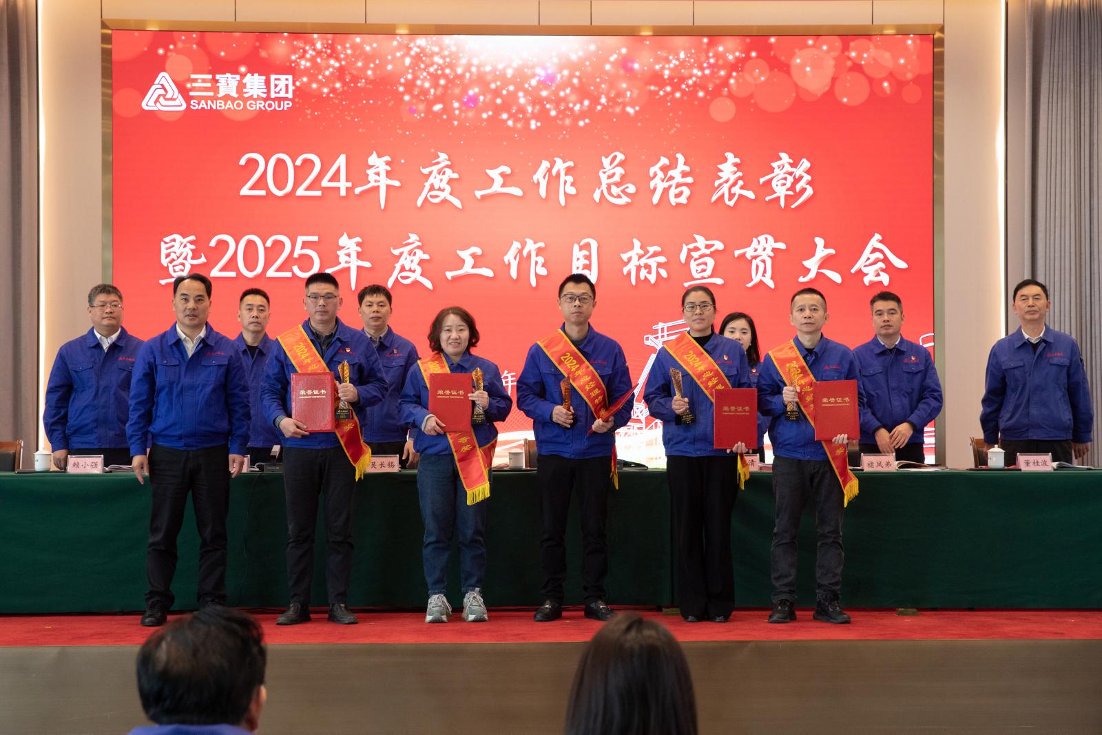 副總經(jīng)理褚鳳弟代表集團(tuán)宣讀《三寶集團(tuán)關(guān)于表彰2024年度先進(jìn)單位及個(gè)人的決定》,本年度共產(chǎn)生總經(jīng)理特別獎(jiǎng)5名,基層勞模55名,先進(jìn)班組32個(gè),優(yōu)秀師傅11名,優(yōu)秀新銳29名;管理創(chuàng)新獎(jiǎng)1個(gè)、項(xiàng)目融資突破獎(jiǎng)1個(gè)、產(chǎn)品研創(chuàng)獎(jiǎng)1個(gè)、優(yōu)秀項(xiàng)目建設(shè)獎(jiǎng)1個(gè)。集團(tuán)領(lǐng)導(dǎo)分別為優(yōu)秀單位和個(gè)人頒獎(jiǎng)。