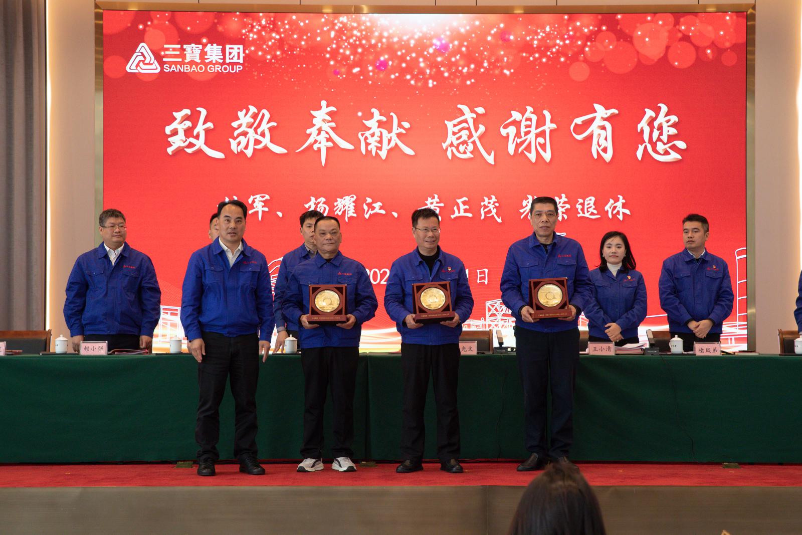 大會(huì)舉行老干部、老員工光榮退休儀式,老干部代表林軍發(fā)表榮退感言。王董事長(zhǎng)為林軍、楊耀江、黃正茂頒發(fā)光榮退休紀(jì)念金牌,感謝他們二十多年來為集團(tuán)做出的貢獻(xiàn)。